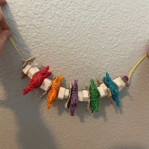 Hey, today I made my bird some toys!